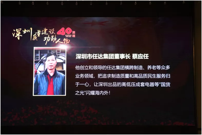 喜訊!任達(dá)集團(tuán)董事長蔡應(yīng)任獲頒“深圳特區(qū)建立40周年質(zhì)量建設(shè)功勛人物”榮譽(yù)稱號,任達(dá)電器榮獲“第二屆深圳品牌百強(qiáng)企業(yè)”榮譽(yù)稱號