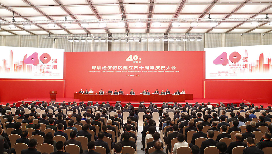 2020年10月14日,深圳經濟特區建立40周年慶祝大會在深圳前海國際會議中心隆重舉行。中共中央總書記、國家主席、中央軍委主席習近平在會上發表重要講話。